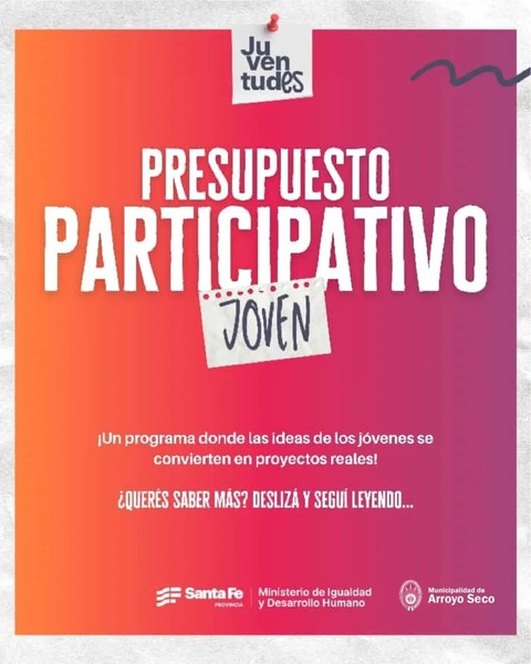 La Municipalidad de Arroyo Seco anunció la puesta en marcha del Presupuesto Participativo Joven, una iniciativa impulsada por la Dirección Provincial de Juventudes que busca otorgar presupuesto real a los jóvenes para que presenten proyectos que mejoren la calidad de vida de la comunidad.
