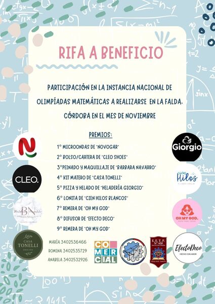 Un grupo de jóvenes de Arroyo Seco que representará a la ciudad en la Instancia Nacional de las Olimpíadas Matemáticas Argentinas (O.M.A.), que se realizará del 10 al 15 de noviembre en La Falda, Córdoba, lanzó una rifa solidaria para reunir fondos y poder cubrir los gastos de inscripción y viaje.