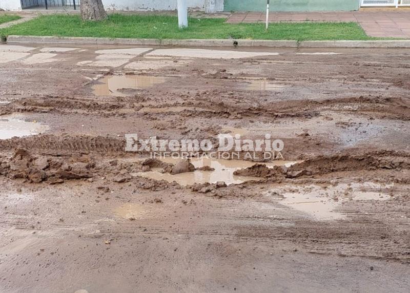 Un vecino de calle Alejandro Gómez, a la altura del 790, hizo llegar a este medio imágenes y un audio donde manifiesta su preocupación por el estado en el que quedó el pavimento tras el desvío de tránsito pesado durante la obra que ejecuta la empresa Rovial.
