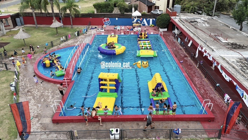 En fin, hoy la alegría de los chicos de la colonia estuvo en el agua, con estos juegos inflables que colmaron la pileta del club tallarín e hicieron de este día, uno muy especial.
