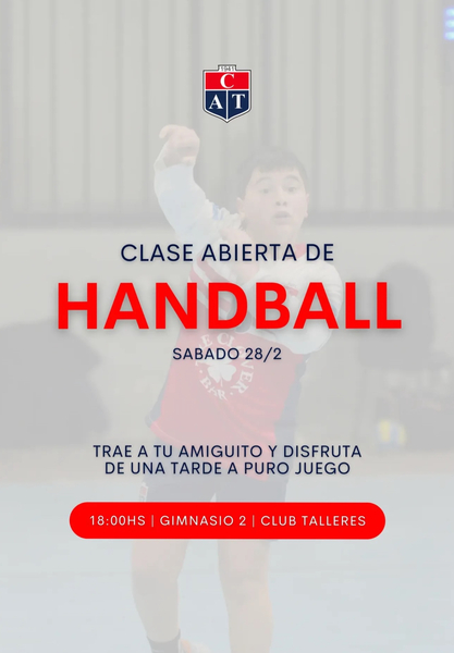El sábado 28 de Febrero, en el gimnasio número 2 del Club Atlético Talleres se estará realizado una clase abierta de handball para los interesados en aprender sobre este deporte que ofrece la institución arroyense.