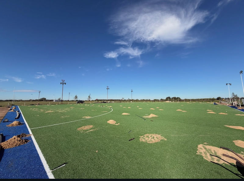 El césped sintético de la cancha de hockey ya fue colocado en casi su totalidad. Desde la institución señalaron que la obra se encuentra en su etapa final y que se trabaja en los últimos detalles para dejar el espacio en óptimas condiciones.