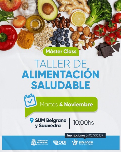 La Comuna de Fighiera, a través de su Área Social, llevará adelante el primer taller de alimentación saludable, una propuesta abierta a toda la comunidad con el objetivo de promover hábitos sanos y una mejor calidad de vida.