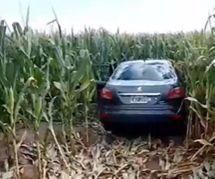 La situación tomó estado público a partir de un video que comenzó a circular a través de WhatsApp, en el que se observa un automóvil Peugeot 207 de color oscuro, con dominio visible LAZ 289, estacionado en un sector rural sin ocupantes ni señales claras de cómo habría llegado hasta allí.