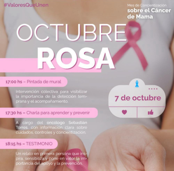Todo inicia a las 17 hs con la pintada de un mural, luego a las 17:30 hs habrá una charla con un oncólogo llamado Sebastián Torres y a las 18:15 hs habrá testimonios en primera persona.