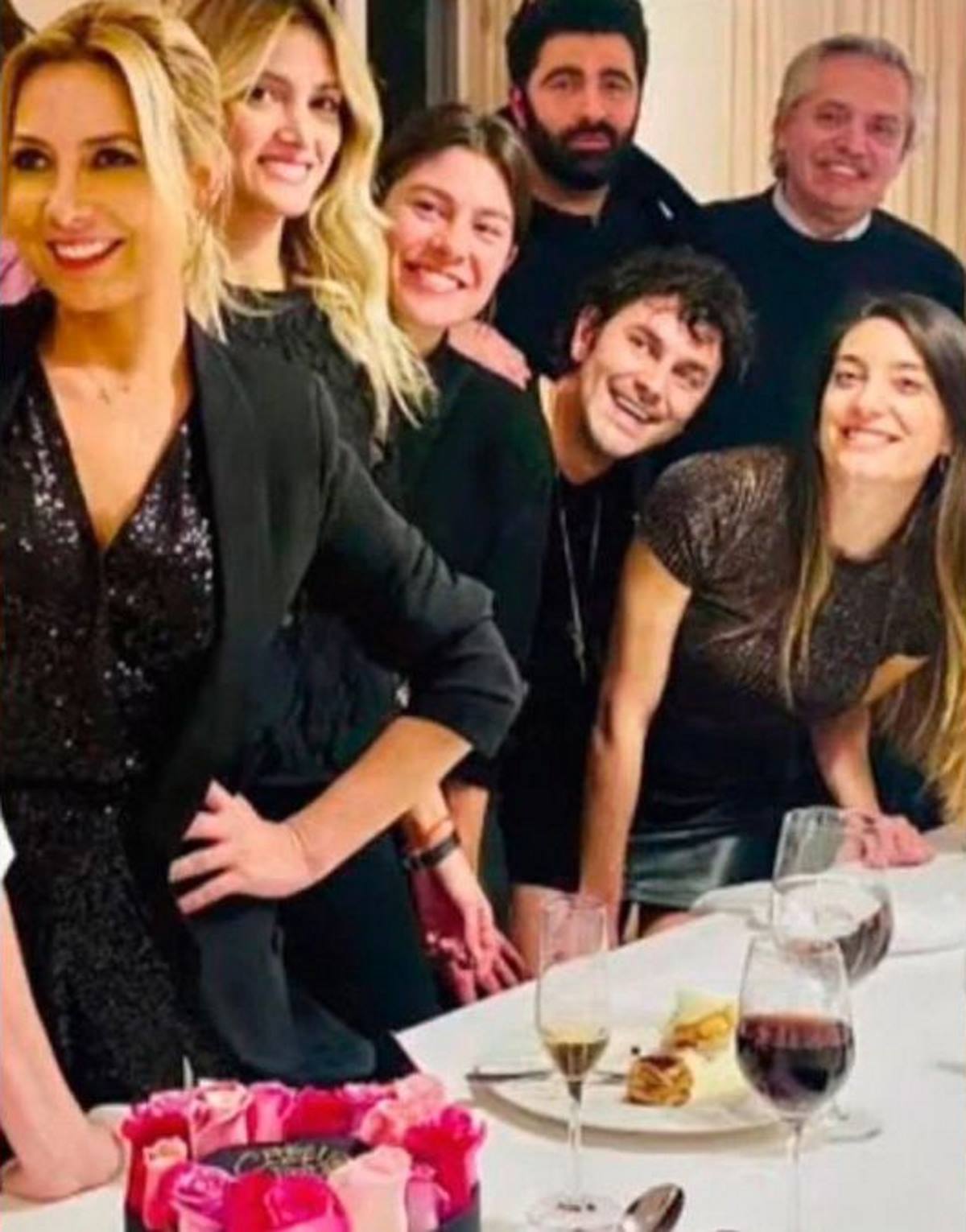 La primera foto del festejo fue difundida por Eduardo Feinmann en el canal LN+. Allí se ven a cinco personas junto con Fabiola Yáñez y el presidente Alberto Fernández, muy juntos y sin barbijo.
