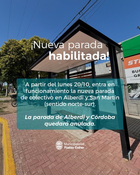 La medida fue informada oficialmente por la Municipalidad de Pueblo Esther, que además comunicó que la parada anterior, situada en Alberdi y Córdoba, quedará anulada.
