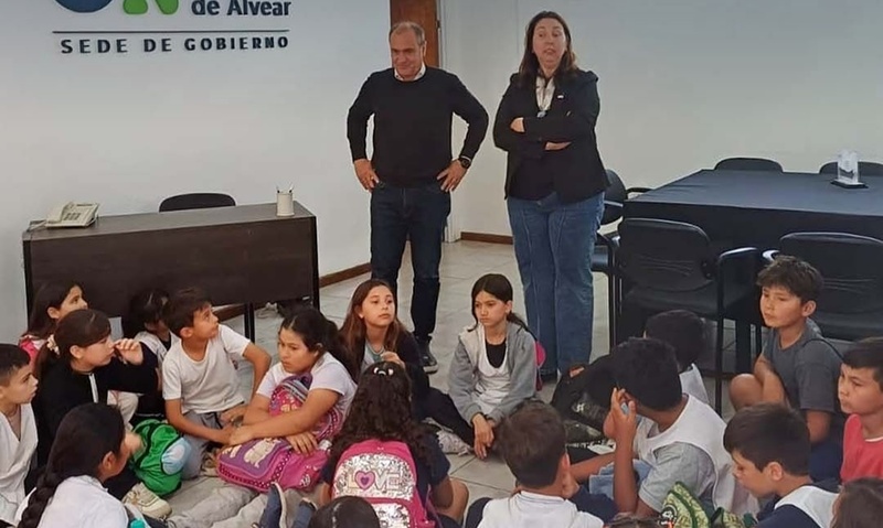 Un grupo de 63 alumnos de 3° A, B y C de la Escuela N°6038 “Gendarme Argentino” realizó una visita educativa a la Sede de Gobierno de Alvear, donde pudieron recorrer distintas instituciones locales y conocer su función dentro de la comunidad.